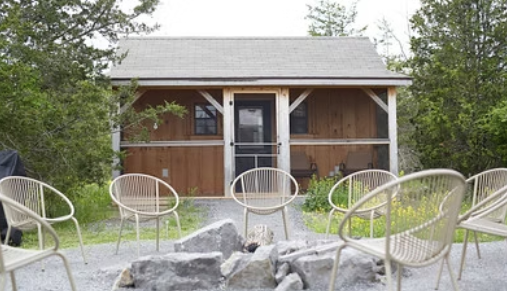 Rather than a rigid schedule, the retreat follows a natural rhythm — responsive to the season, the group, and the land. Your stay includes time in one of five thoughtfully designed luxury cabins, nestled along the top of the escarpment and surrounded by wild forest. The cabins encircle a shared fire pit and seating area — a natural gathering place for quiet evenings, fireside conversations, and stargazing beneath expansive autumn skies.